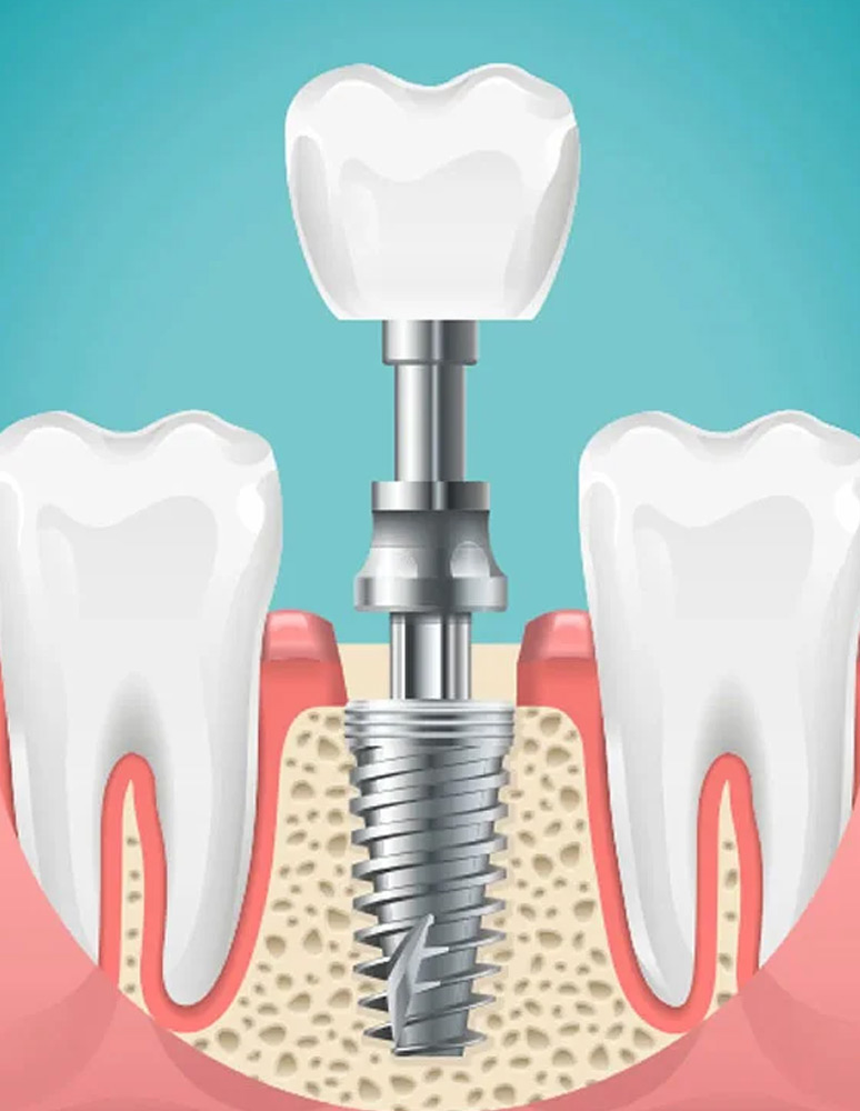 Dental implants are a permanent solution for replacing missing teeth. Made from biocompatible titanium, implants are surgically placed into the jawbone, where they fuse naturally through a process called osseointegration, providing a stable foundation for artificial teeth. Implants restore chewing function, enhance speech, and preserve jawbone health, replicating the look and feel of natural teeth. This treatment is ideal for single tooth replacement or full-arch restorations, offering durability and a natural smile.