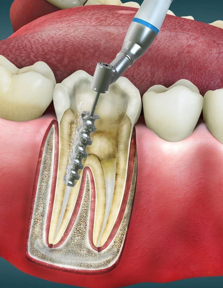 Root canal therapy is performed when the nerve or pulp inside a tooth becomes inflamed or infected due to deep decay, cracks, or trauma. The procedure involves removing the damaged pulp, cleaning and disinfecting the canal inside the tooth, and sealing it to prevent further infection. Root canals relieve severe pain, save the natural tooth from extraction, and restore its function. After treatment, the tooth is often capped with a crown to ensure strength and protection.